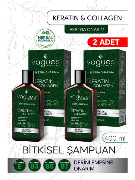 - Vagues Premium Care Keratin ve Collagen bitkisel şampuan, yıpranmış saçları onararak sağlıklı, güçlü ve canlı bir görünüm kazandırır. Keratin, saç tellerini derinlemesine besleyip güçlendirirken; kolajen, esnekliksağlayarak kırılmalara karşı korur. Bu içerikler, saçın nem dengesini yenidensağlar, pürüzsüz bir doku oluşturur. Kökten uca onarım sağlayan Vagues Premium Care Keratin ve Collagen Bitkisel Şampuan saçlarınızı daha parlak, dayanıklı vesağlıklı hale getirmenize yardımcı olur.